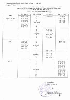Jadwal Kuliah Bulan Ramadhan 1447 H